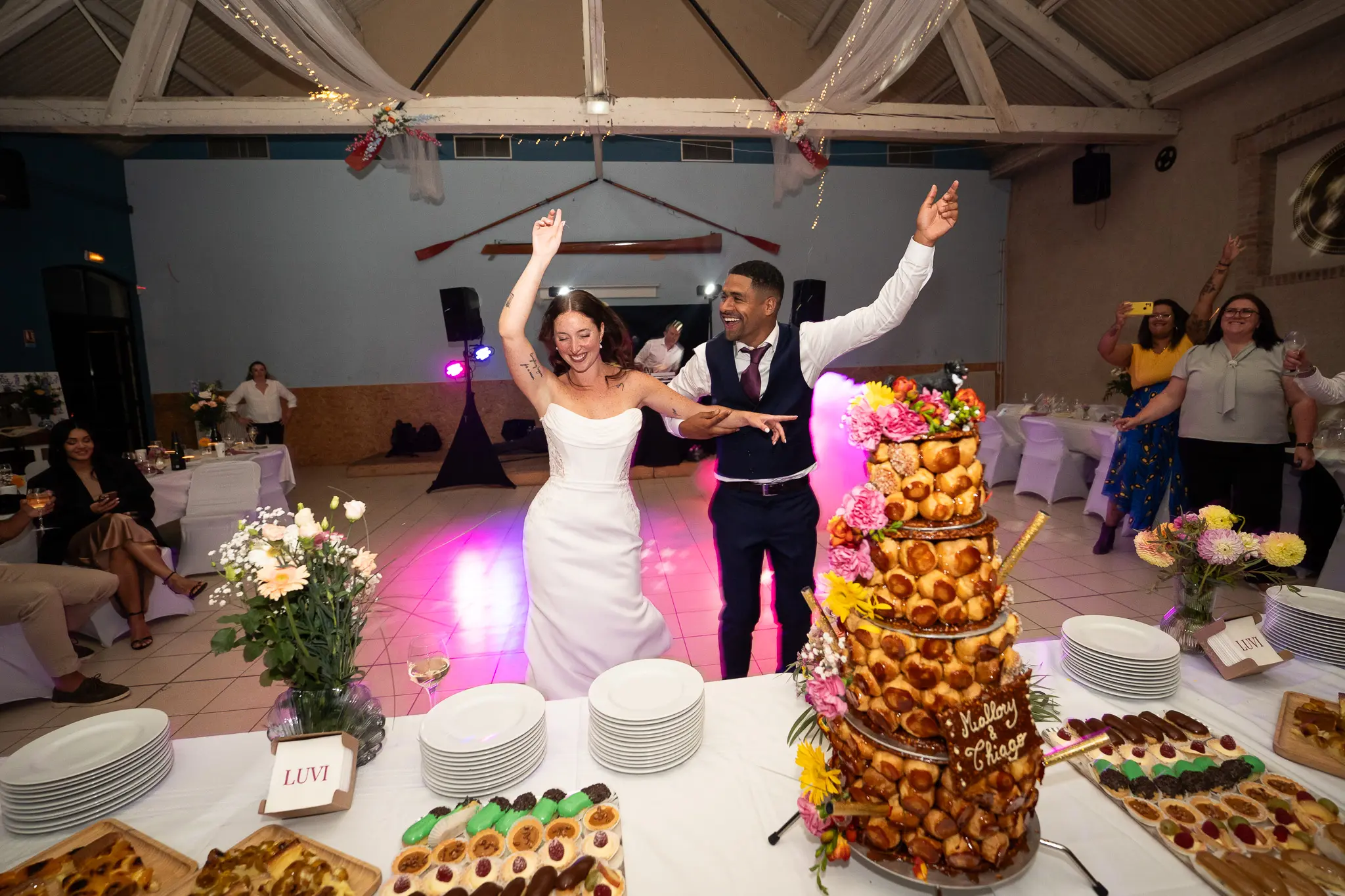Cérémonie civile et/ou religieuse, puis les temps forts jusqu’à la fin du vin d’honneur.